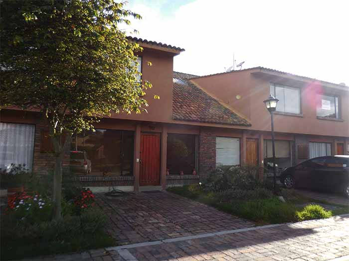 Casa de tres niveles que cuenta con 3 alcobas con closet vestier y baños privados, baño social, sala con chimenea a gas, comedor, cocina integral, zona de lavandería, patio, zona verde